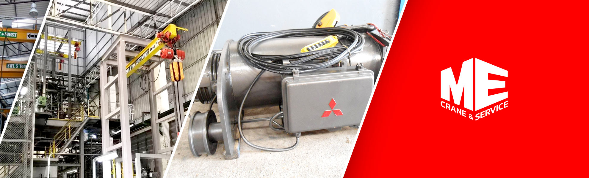 บริษัท เอ็มอี เครน เซอร์วิส แอนด์ ซัพพลาย จำกัด จำหน่ายและติดตั้งเครนไฟฟ้า ติดตั้งลิฟท์เครนไฟฟ้า จำหน่ายเครนโรงงาน จำหน่ายรอกโซ่ รอกสลิงไฟฟ้า รอกไฟฟ้ามือสอง Overhead Crane, Jib Crane จิ๊ปเครน เครนแบบรางเดี่ยว เครนแบบรางคู่ เครนยกของ เครนสนาม